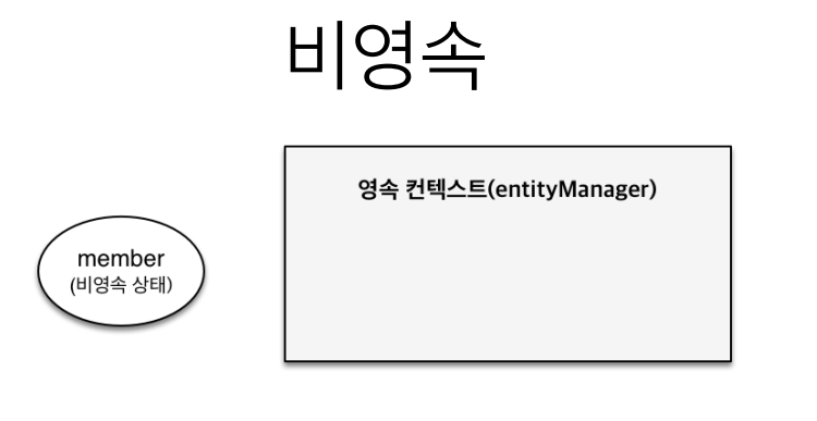 객체를 생성만 했을 경우에는 영속 컨텍스트 밖에 위치한다. 이러한 경우를 비영속 상태라고 한다.