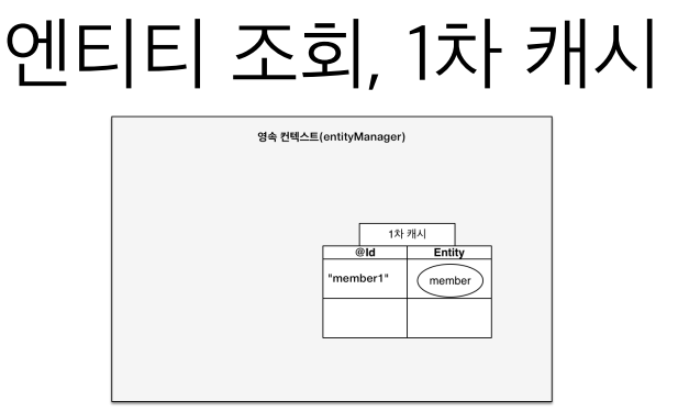 영속 컨테스트 안에는 1차 캐시라는 것이 있는데 Map의 형태로 @ID는 pk값, Entity는 객체가 들어가게 된다.