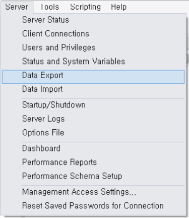 먼저 스키마를 export 하는 방법