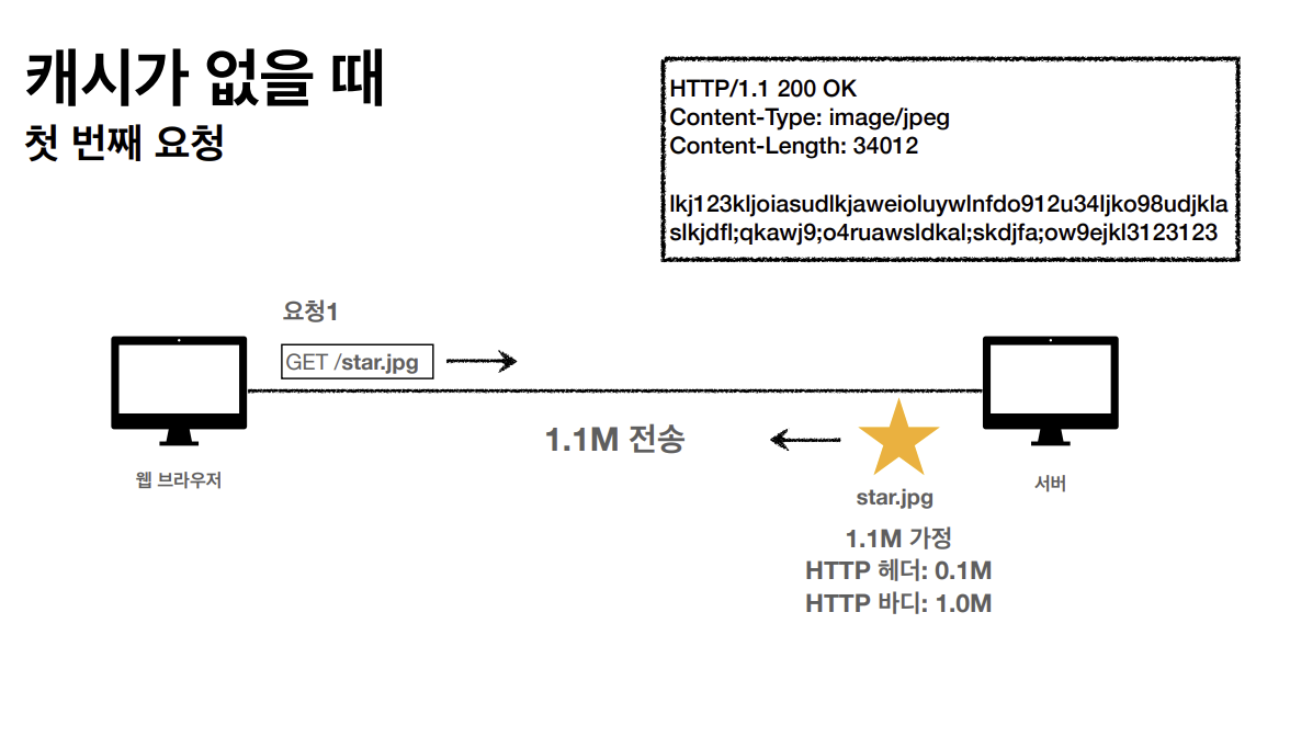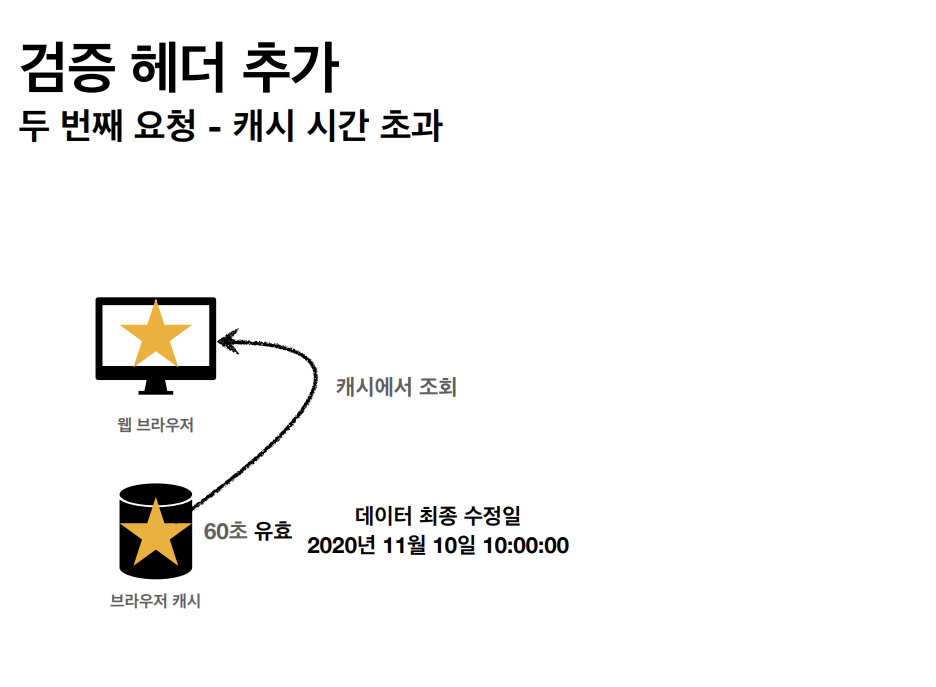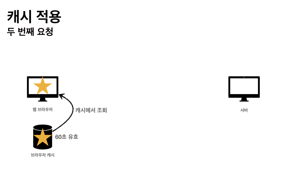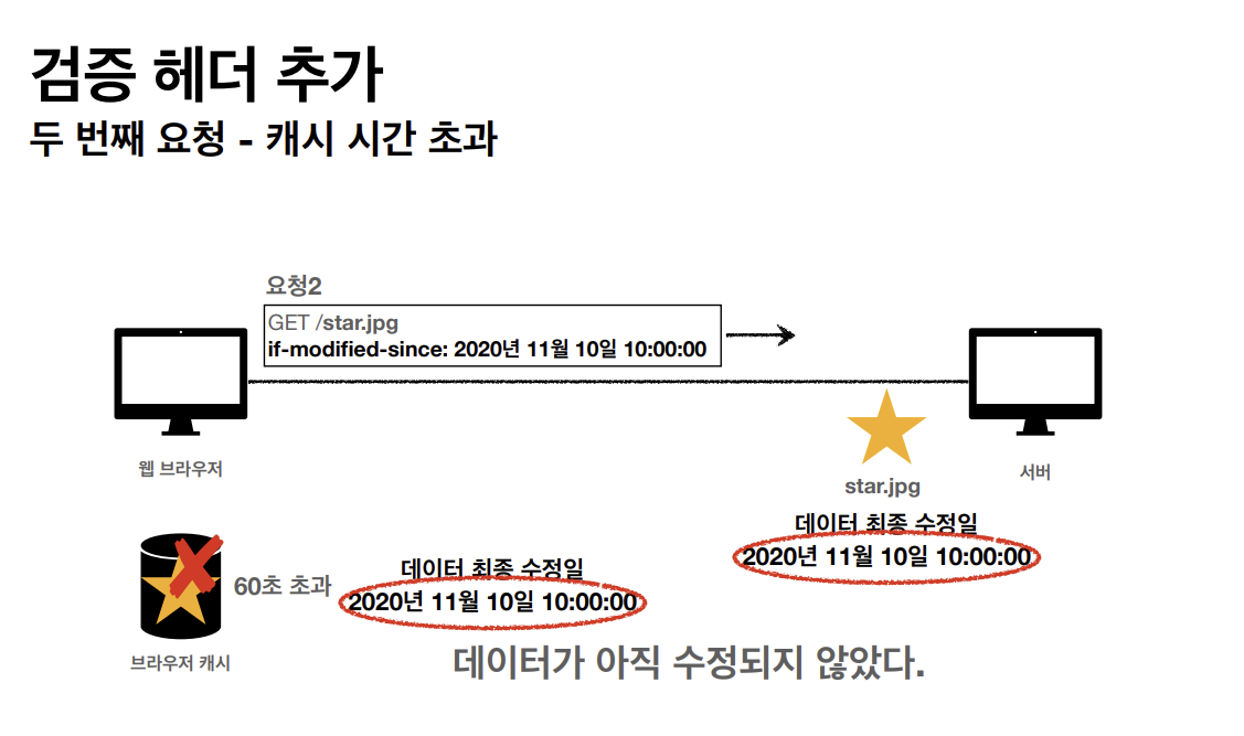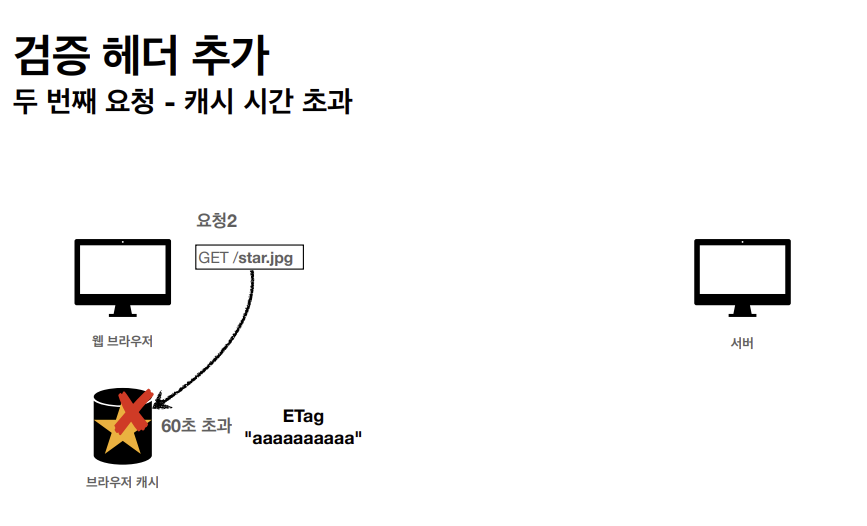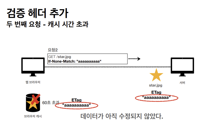 클라이언트가 get메소드 방식으로 star.jpg를 요청한다. 서버가 클라이언트에게 응답을 할 때 아까와는 다르게 캐시 유효 시간을 http 헤더에 추가한다.